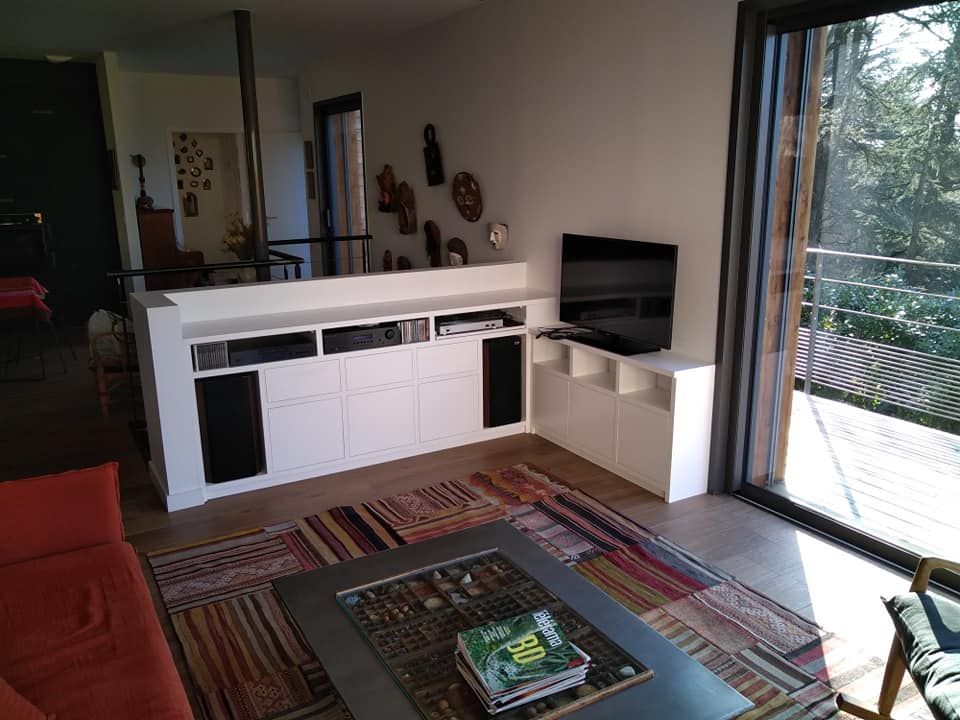 Repensez vos pièces de vie ! Nous créons des aménagements en bois ou dérivés sur mesure pour optimiser votre intérieur tout en apportant du cachet :